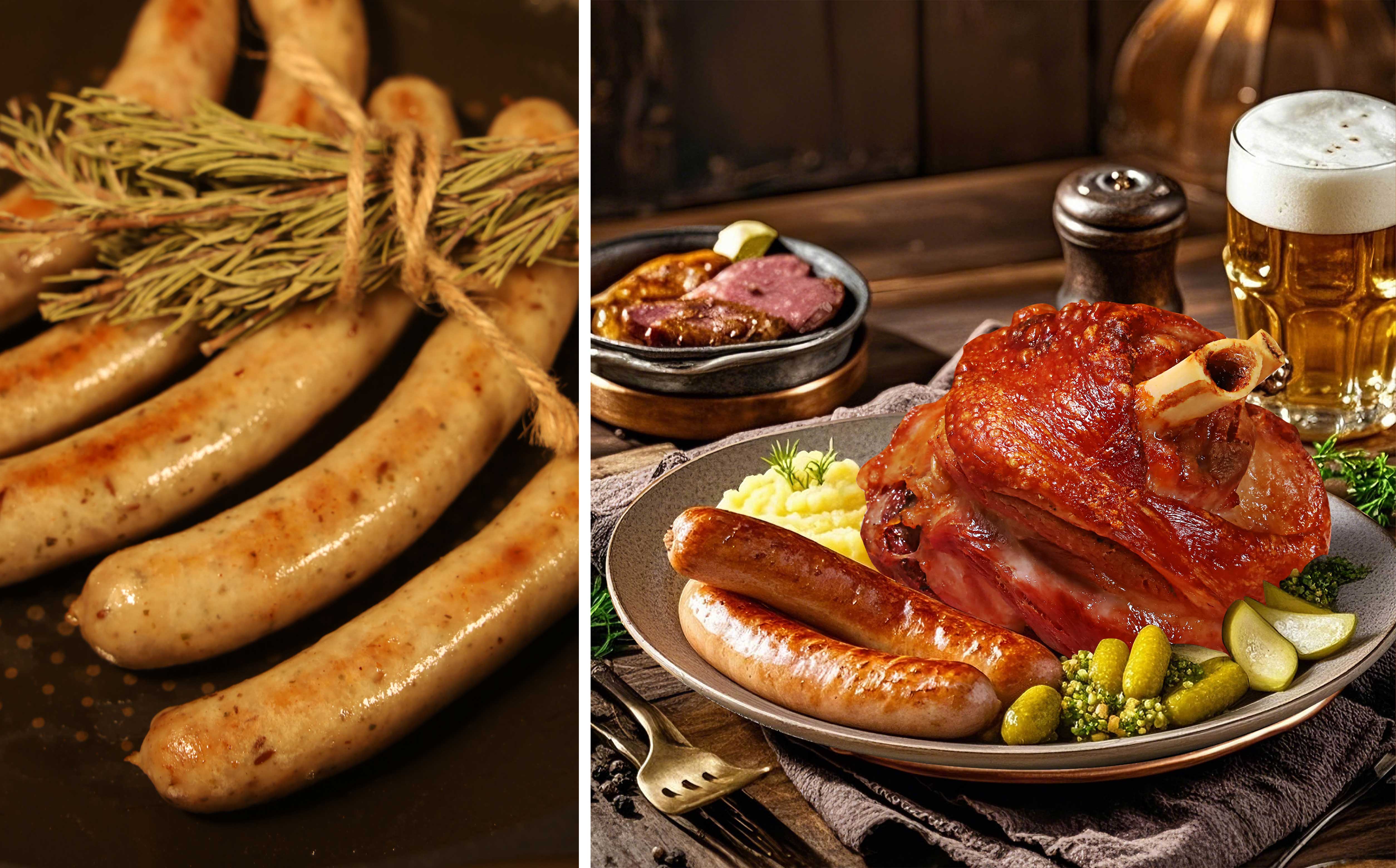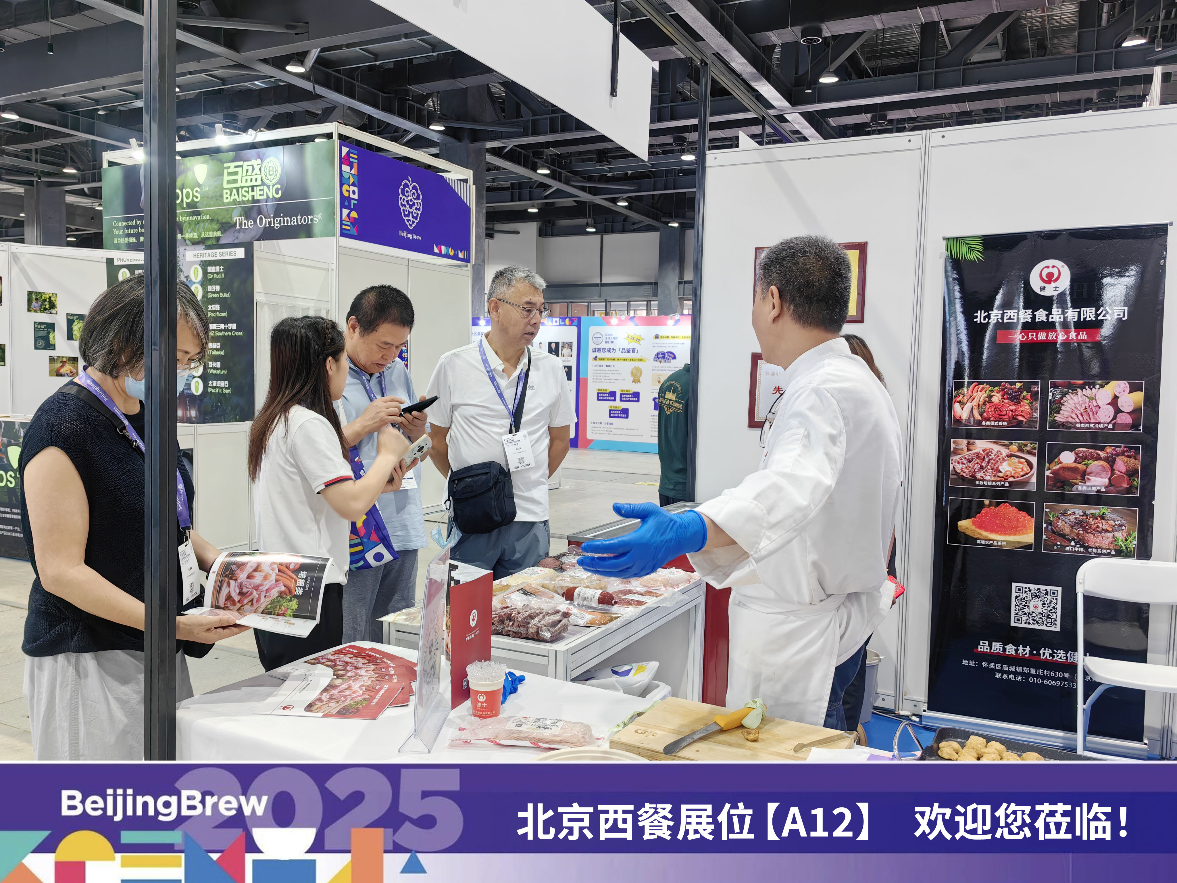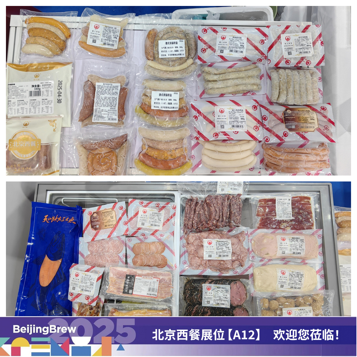 這次展會(huì),北京西餐特別推出的多款【德式香腸拼盤】,包含巴伐利亞白腸、紐倫堡香腸、圖林根香腸等多款經(jīng)典風(fēng)味。肥瘦精準(zhǔn)配比,加入精選香辛料,經(jīng)低溫熟成制作,風(fēng)味十足,口感細(xì)膩咸香?,F(xiàn)場(chǎng)烤制時(shí)油脂與香料的香氣彌漫整個(gè)展館,搭配精釀啤酒的經(jīng)典吃法獲得大家的喜愛,被精釀愛好者稱為 "精釀最佳拍檔”!