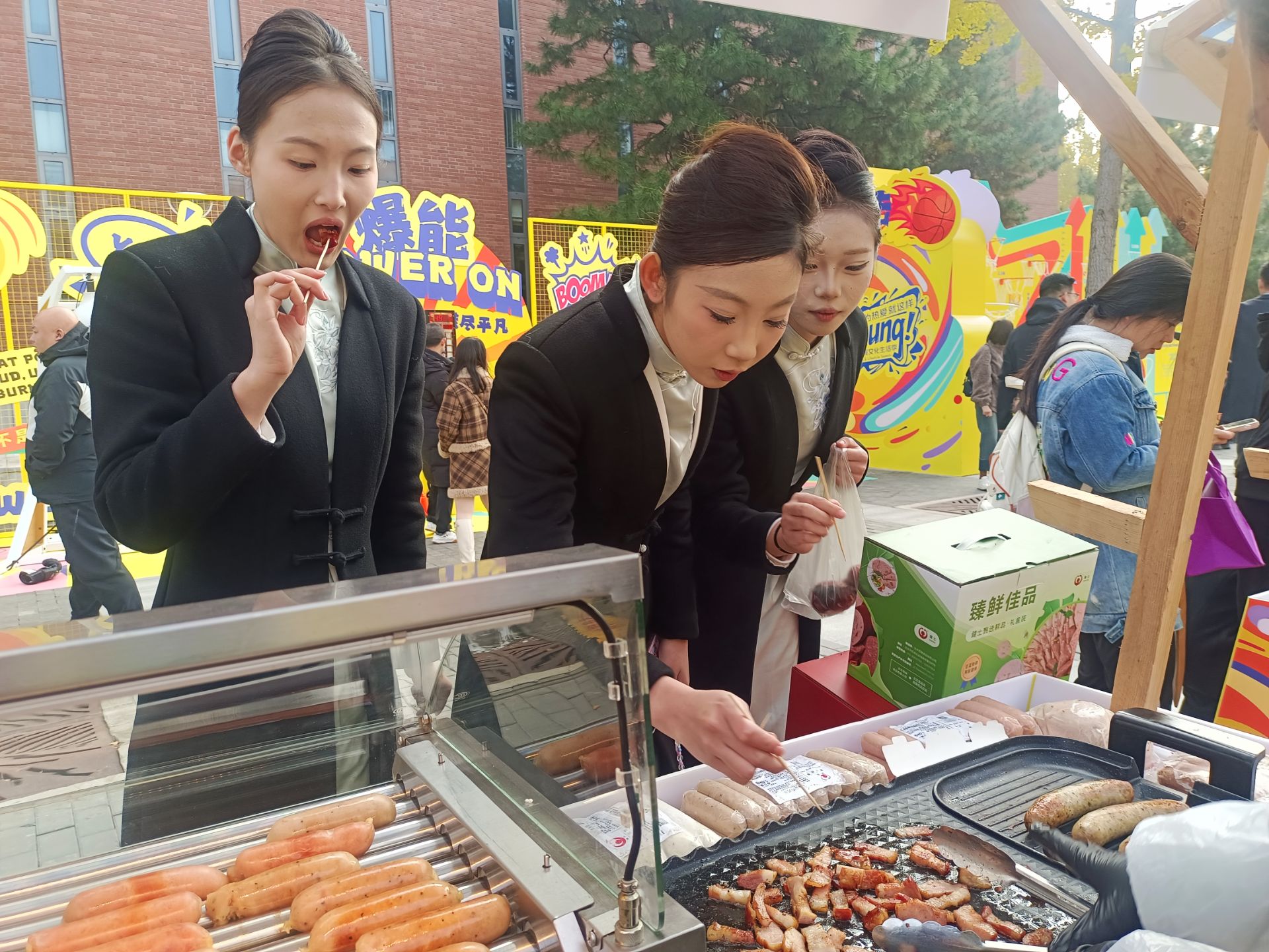 10月25日,懷柔科學(xué)城首屆體育文化生活季文創(chuàng)市集熱鬧開集,這里充滿了運(yùn)動(dòng)的活力與文化的創(chuàng)意,我們將人氣產(chǎn)品德式香腸與精制培根帶到現(xiàn)場,新鮮制作、即時(shí)品嘗。剛擺好食材,煎制香腸的滋滋聲與培根的香氣就吸引了大批人駐足,濃郁肉香迎風(fēng)飄散,迅速點(diǎn)燃了市集的氣氛。